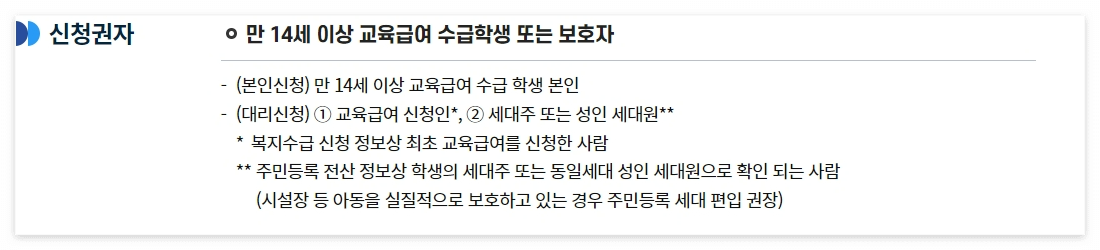 1. 교육급여 바우처 신청 대상, 자격