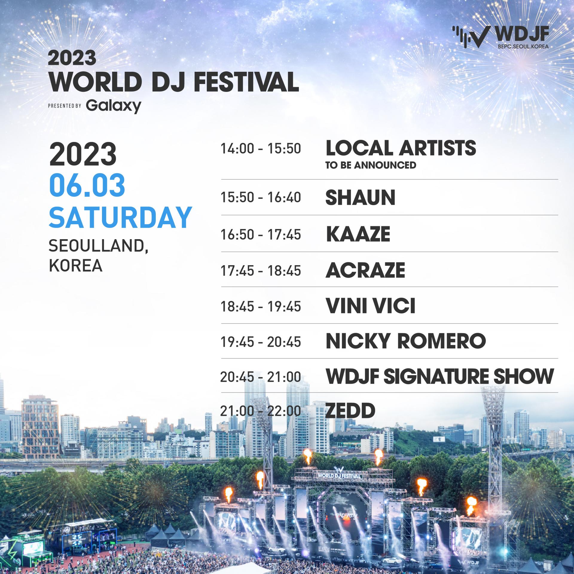 LOCAL ARTISTS > SHAUN > KAAZE > ACRAZE > VINI VICI > NICKY ROMERO > WDJF SIGNATURE SHOW > ZEDD